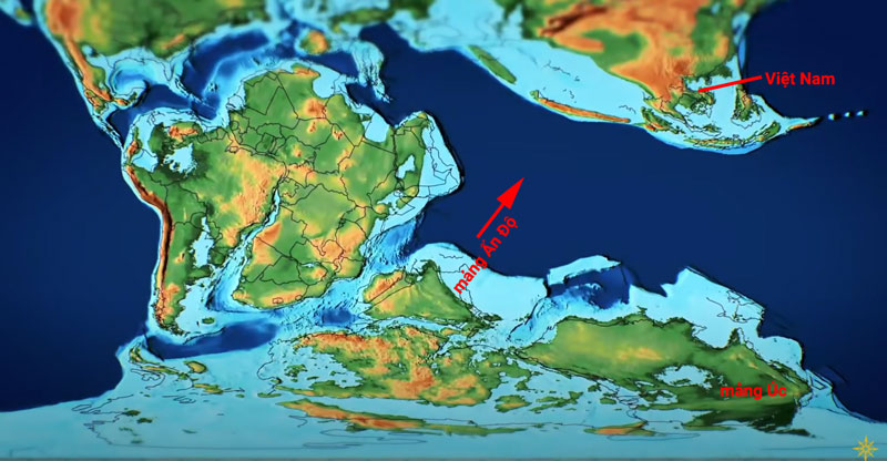 100 triệu năm trước, Trái Đất có 2 siêu lục địa phân tách nhau khá rõ ràng. Laurasia ở bán cầu phía Bắc bao gồm Việt Nam hiện nay thuộc mảng Á Âu và mảng Ấn Độ, Úc thuộc siêu lục địa Gondwana ở bán cầu phía Nam.