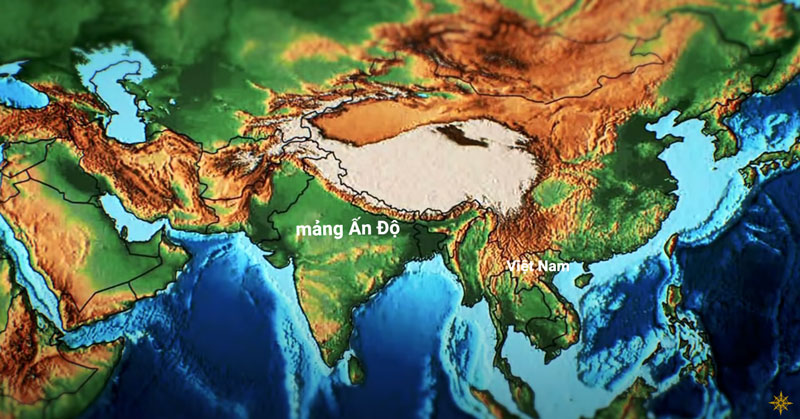 45 – 50 triệu năm trước, sau một khoảng chạy nước rút, không hề mệt mỏi, không thắng phanh nào cản nổi, mảng Ấn Độ đâm xầm vào mảng Á Âu sừng sững, to lớn đứng đó hiên ngang đón nhận. Rầm, rầm! Kinh hoàng! Chấn động địa cầu. Phải tua nhanh chúng ta mới thấy thước phim dữ dội ấy.