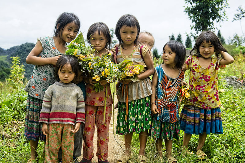 Như đã hẹn, chúng tôi trở lại sớm hôm sau, 8h sáng đã có mặt tại Lũng Phìn từ Mèo Vạc. Gọi điện xong, 15 phút sau 2 anh xuất hiện mỗi người chiếc xe máy như 2 chàng bạch mã hoàng tử cười tươi roi rói từ từ tiến lại gần. Ba người chúng tôi chia 2 tốp, tôi và anh bạn nhỏ gầy hơn leo lên chiếc xe Win của anh Mông to con hơn, còn anh bạn to con hơn lên chiếc xe còn lại. Ôi thôi, quả thật sau ấy chúng tôi mới cảm nhận sâu sắc vẻ đẹp và giá trị của đá núi Đồng Văn. Cả con đường dài gần 3km như trải dài vô tận, đường mòn chưa rải bê tông, toàn đập đá núi cứng ngắc rải ra, hòn bé nhỏ bằng nắm tay, hòn lớn to ngang đầu con chó tản khắp đường. Tôi ngồi sau cùng, xe lắc lên lắc xuống liên tục theo chiều thẳng đứng, dồn dập liên hồi đuổi bắt hơi thở từng nhịp, lâu lâu lắc đảo xe như muốn kéo ngã oạch cho xong. Chưa kịp hoàn hồn sau cú sắp ngã, anh trai lái xe chống chân thở lấy sức hỏi tôi ngồi được không, lịch sự do tôi người lạ thôi, quen xem chắc khỏi hỏi. Chỉ có thể hổn hển cười xòa với anh trai thôi. Rồi một phát anh rít ga lắc côn đi tiếp, sau quãng dốc ngược là lao xuống, cảm giác vi vu trên núi đèo xưa nay tôi trải qua nhiều nhưng dầm mình bầm dập trong khoảng yên ngồi chật hẹp quả rất thử thách. Chúng tôi ngấm đòn cộng chút buồn cười rú lên liên tục thể hiện sự phấn kích rần rần suốt quãng đường. Đột nhiên thấy anh chàng dừng xe đột ngột trước ngôi nhà nhỏ, gọi điện thoại kêu anh Pó – cháu ông cụ làm trà đi cùng cho vui. 5 phút sau, anh cháu tên Pó chạy ra vác xe tham gia cùng chúng tôi luôn, tôi chuyển sang xe anh liền. Lên vùng cao, nhiều phút ngẫu hứng xuất hiện làm kịch bản gia tăng cảm xúc liên hoàn.