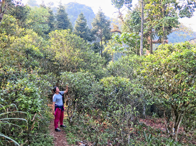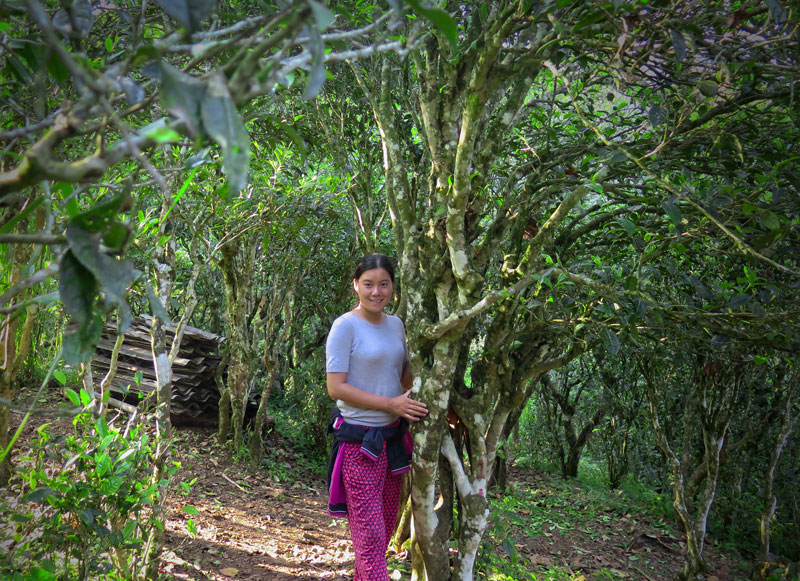 Cơm nước xong xuôi, tôi háo hức muốn pha thử chất lượng mẻ trà ra sao, nhưng không đủ thời gian, ấm chén nước non không tiện sẵn. Sau đó còn kế hoạch đi xem cây chè to ở dãy núi bên kia cách chừng 7km nữa. Thế là 6 người trên 3 chiếc xe máy xuống trung tâm quành qua con đường khác, đi dọc đường chính một lúc, đến nơi đỗ xe bên đường, đi bộ chừng 300m con đường mòn nhỏ thì đến điểm võng đáy thoai thoải giữa 2 ngọn núi cao tương đối. Tôi thấy một cái cây chè gọi là to to, cao tầm hơn 5m, tán vòm tròn, chỏng chơ giữa trời, xa xa chỗ kia có 2 cây chè nho nhỏ cạnh nhau. Tôi trố mắt ngạc nhiên xác nhận lại có đúng là cái cây to anh đề cập không. Anh ấy gật đầu chắc nịch. Hớ hớ ! Thật là ngoạn mục, bất ngờ khác xa những gì tôi tưởng tượng. Đúng là cây chè to to thật vì sinh trưởng rất chậm và nó lớn hơn những cây ở nhà cụ già mù. Tôi nghĩ ít ra cũng vài chục cây chứ nãy giờ lơ thơ 3 cây giống như tôi đang đứng trời chồng, ngẩn người tò te. Thoáng chút bỡ ngỡ qua đi, hỏi thêm biết rằng trước đây mấy chục năm, cây chè phân bổ rải rác ở đây khá nhiều lên mạn triền núi cao bên kia, nhưng xứ đá cằn gai góc này nhìn cây chè đâu thể sống mãi được, họ đốn hết đi tra ngô trồng cải xen kẽ. Điều này có thể hiểu được, dân số ít, đất thịt quá ít không đủ trồng cây lương thực, cây rau, người dân ăn chính là mèn mén (bột ngô xay), đậu xị và rau cải mèo. Cây chè là một loại cây, bình đẳng như những cây khác trong núi. Trước khi họ đợi tới ngày kiếm tiền từ cây này có lẽ chết đói hết rồi. Ba cây kia vì sao giữ lại làm kỉ niệm hay làm gì thì 3 anh Mông cũng không biết nguyên do. Đi một đoạn nữa tôi thấy nhiều bụi trà mọc hoang, khá thấp tới bụng ngực người lớn mới canh tác hàng loạt tầm 20 năm tuổi. Cây lớn tự nhiên, không sử dụng phân bón hay thuốc trừ sâu. Kế hoạch này bắt đầu từ một cán bộ tôi không nhớ rõ tên, làm ở phòng nông nghiệp huyện, anh rất yêu vị trà Lũng Phìn, xót xa trước sự mất mát đốn chặt hàng trăm nghìn cây trước đây, nên anh đề nghị trồng lại hoàn toàn bằng hạt giống chè nơi đây, tái tạo lại cho tương lai một thế hệ chè khỏe mạnh, hương vị đặc biệt. Chúng ta phải cảm ơn anh rất nhiều vì những gì anh đã làm, đóng góp tăng sản lượng trà Lũng Phìn, quảng bá chất lượng khác biệt.